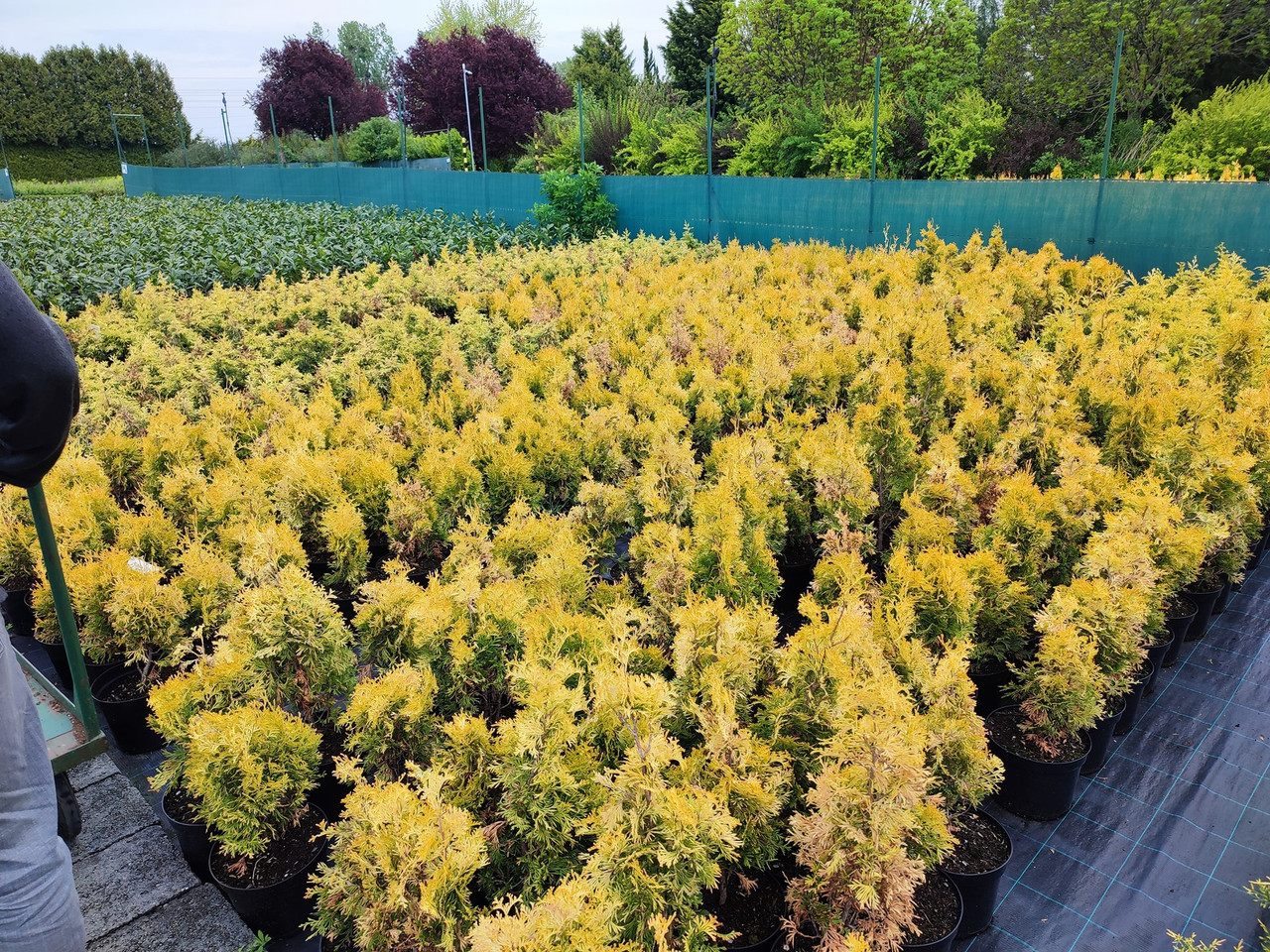 Ősztől-tavaszig földlabdás növényeket is termelnek ki, a 9 + 13 db 'Barabits Compact' tujánk tőlük jött 2021 telén és 2022 tavaszán.
